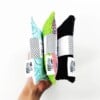 A washable sponge by Marley’s Monster, super soft terry cotton on one side with a mixed print and mesh covering on the other for different scrubbing options.  Soft enough for the body at bath time and strong enough for cleaning pots, wiping down spill the list is endless.
