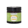 Recycled and recyclable glass jar, recycled and recyclable plastic polypropylene #5 lid with removable EPE liner, sustainable rock paper labels, sustainably paper card box and vegetable ink.