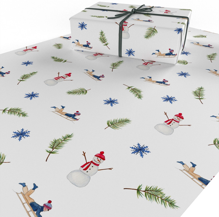 Christmas Snowmen & Sleighs Wrapping Paper – 2 Sheets