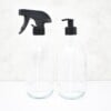 Peace With The WildClear glass bottle with a black spray trigger, pump or screw cap is perfect for refilling with your own cleaning spray solutions.