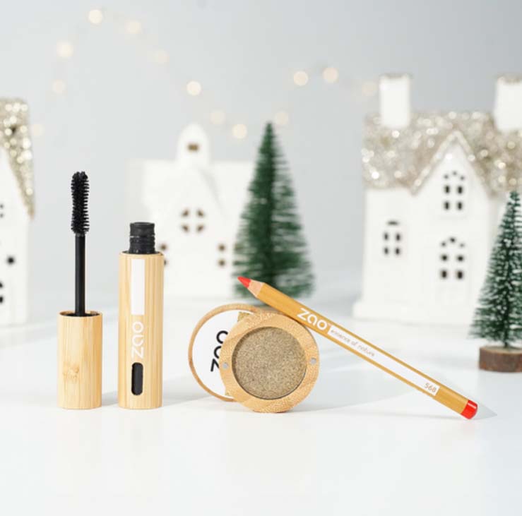 ZAOThe Couture Selection is a selection of our latest sustainable, organic and vegan makeup products, presented in a pretty festive-themed pouch with green ribbon trim.