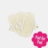 Eco FemmeA 3 set of 100% organic cotton reusable panty liners with a cream front and swirl print back.