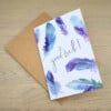 Stefanie LauBeautifully illustrated feather ‘Good Luck’ card. Ideal for a leaving card, travelling, new job, or moving card.