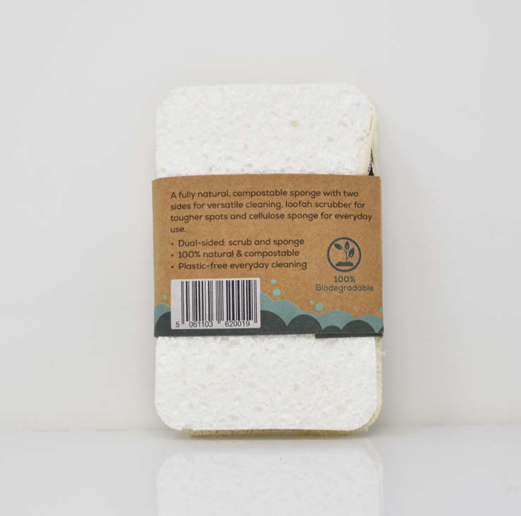 Each sponge features a dual-sided design: a soft, absorbent cellulose side for gentle washing and wiping, paired with a natural loofah scrubber to tackle tougher messes, dried-on food and stubborn residue. Tough on grime yet kind to surfaces, it’s ideal for dishes, pans, worktops and general household cleaning.