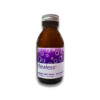 Recycled glass bottle with metal lid, biodegradable label, plastic EPE lid liner.