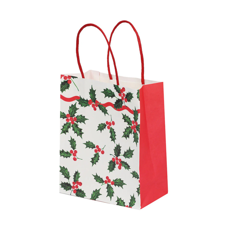 Holly White Christmas Paper Gift Bag – 8 Pack