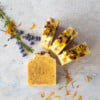 Each soap bar is made from a blend of shea butter, cocoa butter, sweet almond oil, and olive oil, resulting in a nourishing, skin-loving bar. Hand-decorated with a beautiful array of botanicals, these soaps are 100% natural, palm oil-free, and vegan-friendly.