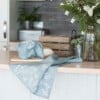 Natural Linen Tea Towel – Duck Egg Garden