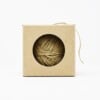 A natural flax twine housed in a recycled paper dispenser that can be refilled. The dispenser has a cutting blade built-in.
