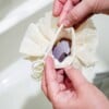 Marley's MonstersOrganic mesh ruffles surround a mini soap saver bag to create the world’s first soap saver shower pouf!