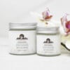 This organic facial cream is packaged in a cosmetic grade glass jar and aluminium lid with a 100% biodegradable label and a recycled card lid liner.