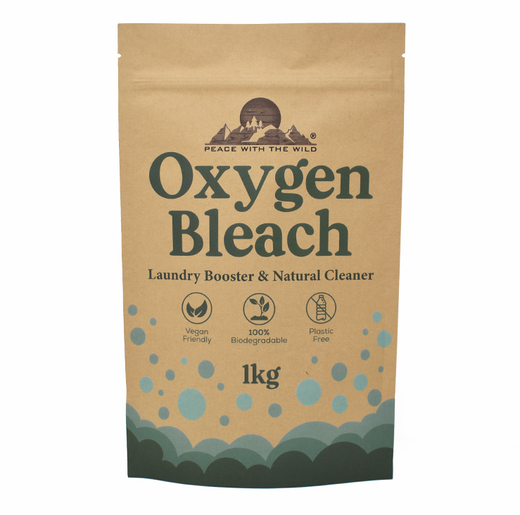 Peace With The Wild“New Look, Same Product”- Oxygen bleach is a non-toxic, safe and gentle biodegradable alternative to chlorine bleach that effectively removes stains, disinfects surfaces and brightens the whites and colours in your laundry. The list of uses for this fantastic natural product is endless.