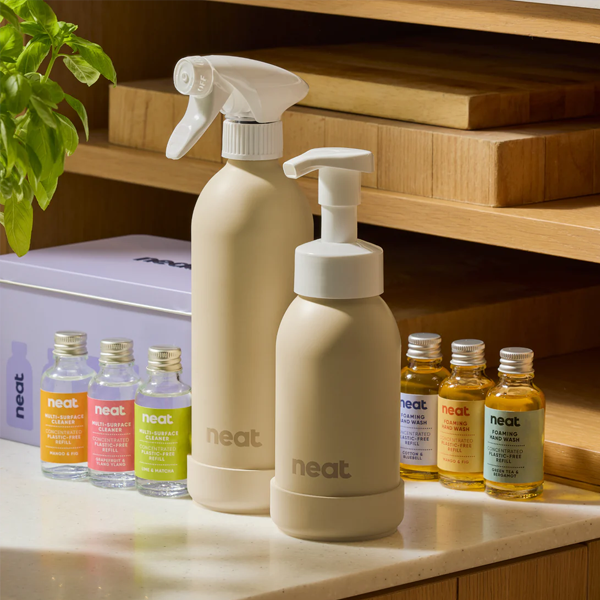 neat.Upgrade your handwashing routine with Neat’s refillable foaming hand wash dispenser — sustainable, stylish, and designed to last. Made from 100% recycled aluminium, it looks great on your sink while cutting down on single-use plastic.