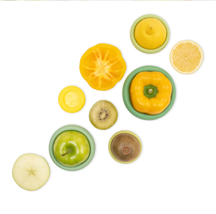Keep your fruits, vegetables, and leftovers fresh with this set of 5 sage green Food Huggers. It includes all sizes XL, L, M, S and Mini, perfect for covering jars, open cans, and small containers. They nest neatly for space-saving storage, helping you reduce waste, save money, and make the most of your fresh produce.