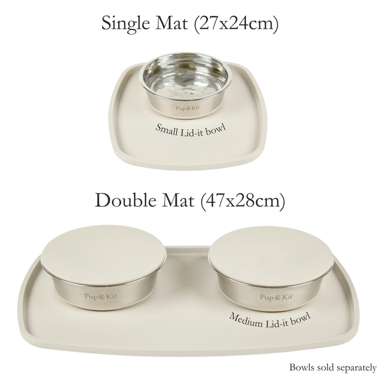 Say goodbye to the mealtime mess. Our Pup & Kit Silicone Feeding Placemats with catching lip are made with 3x thicker, food-grade silicone for a sturdy, spill-proof mat you can actually carry to the sink - no flop, no fuss. - Triple-thick silicone quality - Raised catching lip - Keeps its shape when carrying - BPA-free & dishwasher safe Available in Single (perfect water station) and Double (full feeding setup) sizes, with a raised lip to catch spills and a non-slip base to keep bowls steady. Available in Boujee Beige, a colour that’s classy, timeless and modern, or classic Grey that goes with everything.