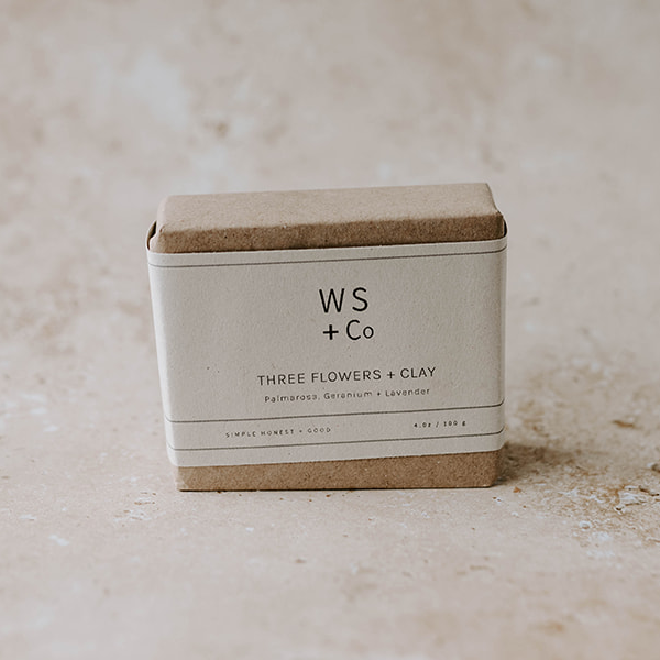 Wild Sage & CoThree flowers and red clay soap bar handmade by Wild Sage & Co. The added Australian red clay draws out toxins while the lavender, geranium and palmarosa essential oils sooth and rejuvenate. Three flowers is especially good for oily and acne prone skin, but is suitable for all skin types. Coconut oil & sunflower oil provide additional antioxidants and moisturising properties, making this soap bar especially nourishing.
