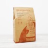 Glass bottle with a metal lid. Recyclable/compostable card box, biodegradable label and biodegradable lid liner.