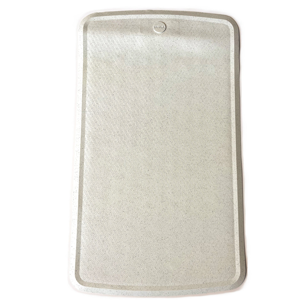 Packaging - 100% compostable mailer bag.The Upcycled Baby Bath Mat in Sand is made from upcycled natural rubber. Soft, non-slip and eco-friendly, it helps keep baby safe at bath time.